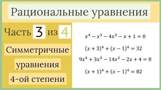 Симметричные уравнения четвертой степени. Рациональные уравнения Часть 3 из 4