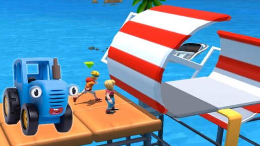 Синий трактор - Гонка с препятствиями - Игровой мультик для детей