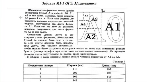 Задача про форматы листов. ОГЭ 2024. Сборник Ященко, 1 вариант