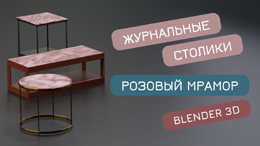 Три журнальных столика со столешницей из розового мрамора с золотыми переливами, смоделированные в Blnder 3D