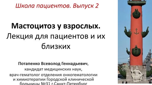 Школа пациентов. Выпуск 2. Мастоцитоз у взрослых. Лекция для пациентов и их близких.