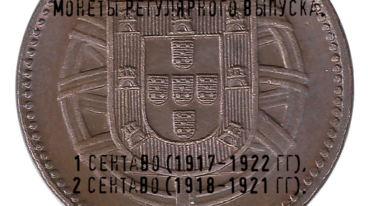 Португальская Республика. 1 сентаво (1917-1922 гг) и 2 сентаво (1918-1921 гг).