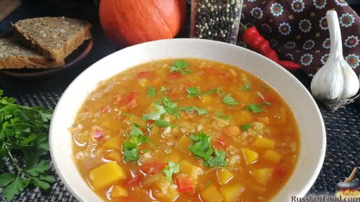 Согревающе-осенний суп с большим количеством пряностей. Острый гороховый суп с тыквой