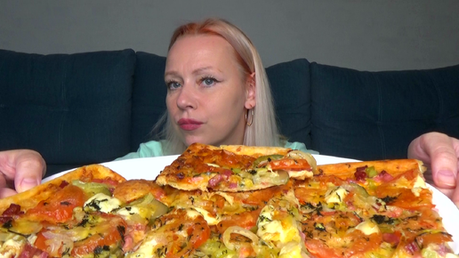 Мукбанг ПП почти. Домашняя пицца с бочковыми огурцами. Вечериночка. Еда.