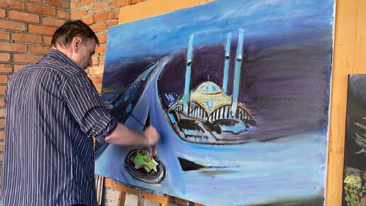 Работа на 3 холстах,Аргунская мечеть имени Аймани Кадыровой,натюрмортыРембрандтиКараваджо. ЗилавдиЯшуркаев.