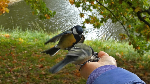 Угощаем веселых птичек синичек! Осенний Екатерининский парк! Царское Село.