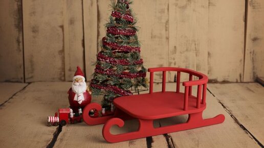 Деревянные, красные, новогодние сани. Сани для новогодней фотосессии. Реквизит для newborn съемок