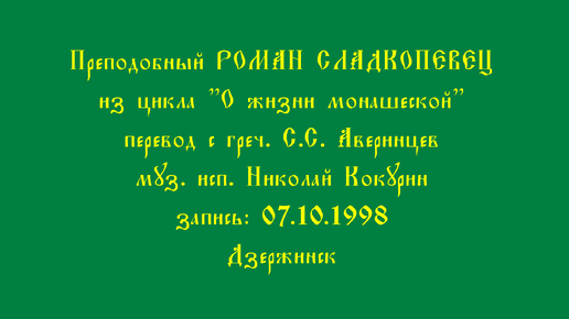 Николай Кокурин - из цикла о жизни монашеской (Роман Сладкопевец)