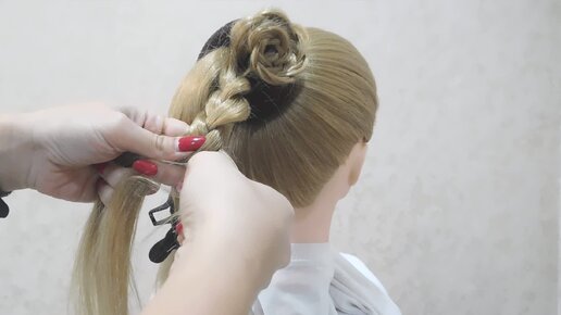 Красивая прическа на средние и длинные волосы. Пучок при помощи хвоста.