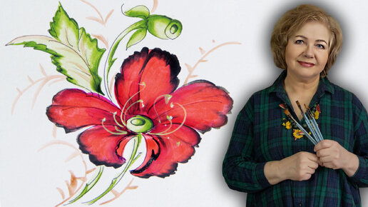 Посмотрите, как нарисовать красивый Мак за 15 минут. Живопись акрилом. Уроки рисования