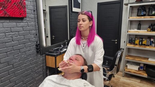 Розоволосая, юная барбер Иришка чётко побрила меня опасной бритвой! Реально кайф получил!