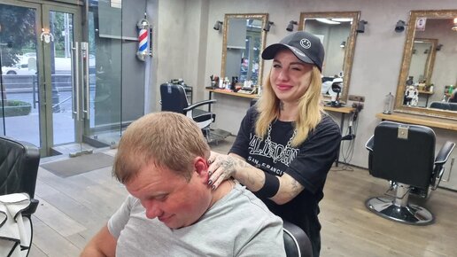 Ещё и уши мне ПОДПАЛИЛА огнём! Хорошенькая барбер Эля с офигенными татушками!