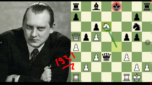 Простая яркая обеда на классе великого маэстро. Александр Алехин - Борислав Костич, 1931, Блед, система Колле, 1-0