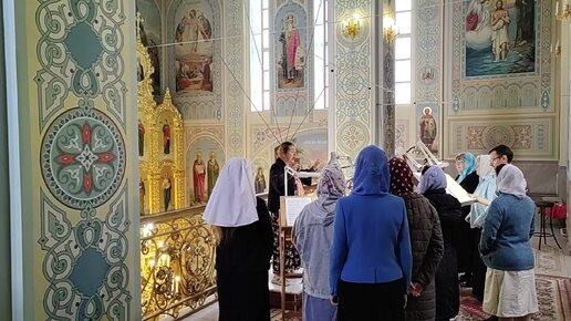По входе: тропарь и кондак праздника Покрова Пресвятой Богородицы. Регент Таисия Марченко.