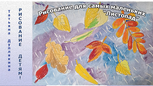 Рисование для самых маленьких, рисуем чёрным маркером, масляной пастелью и акварелью, осенний ветер и листопад