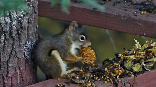 Необычайно хорошенький 😍 бельчонок 🐿️ заготавливает зеленые грецкие орехи 🍪 на зиму ❄️