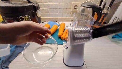 Терка для овощей и фруктов с тремя насадками / Ручной кухонный комбайн для нарезки белая
