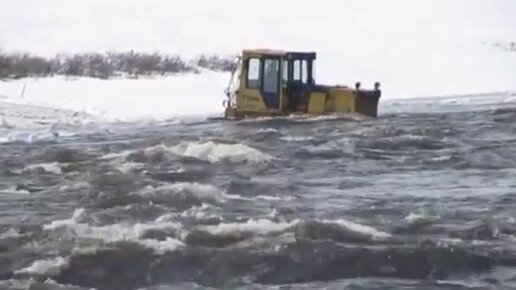 Тракторист на «Т-130» почувствовал себя водолазом переправляясь через глубокий водоем