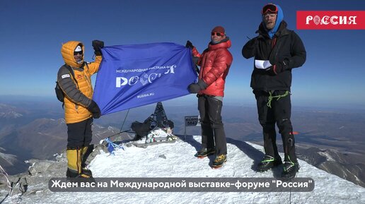 ⛰ Флаг Международной выставки-форума "Россия" появился на самой высокой вершине нашей страны и Европы — Эльбрусе