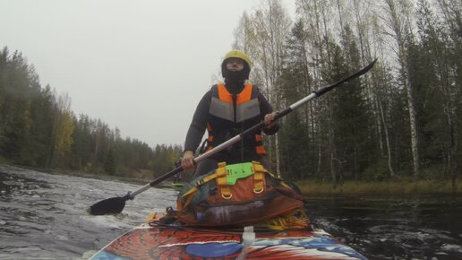 Шивера после порога Мостовой на реке Ууксунйоки. Прохождение на сапе с каячным веслом. Октябрь 2023
