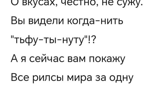 О вкусах, честно, не сужу. Вы видели когда-нить "тьфу-ты-нуту"!? А я сейчас вам покажу Все рилсы мира за одну минуту. German