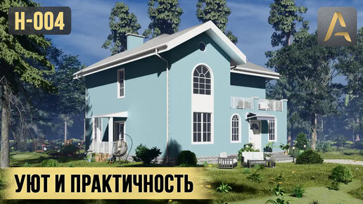 Практичный двухэтажный дом для небольшой семьи. Проект дома с эркером, уютной верандой и балконом