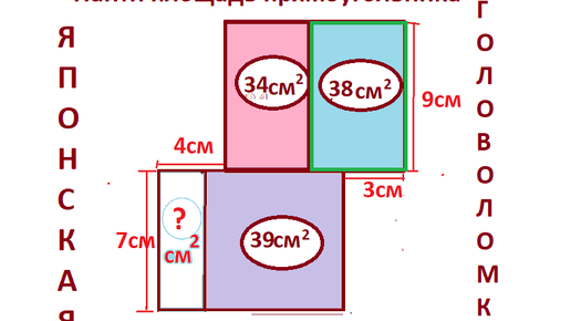 Японская головоломка. Найдите площадь нижнего сдвинутого прямоугольника