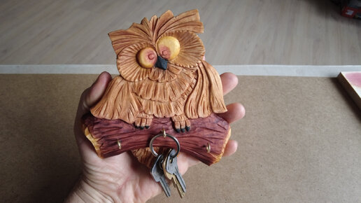 Резьба по дереву. Сова-ключница из липовой доски