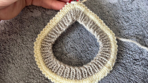 Формирование канта на горловине. Связали резинку нужной высоты, 1*1 или 2*2, или как вам нравится. Затем провязали 3 ряда лицевой гладью.