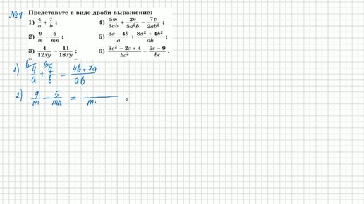 Домашняя самостоятельная работа по теме Сложение и вычитание алгебраических дробей с разными знаменателями. Часть 1
