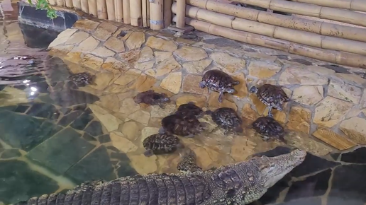 Видео: смелые черепашки едва не отняли обед прямо из пасти крокодила