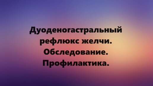 Дуоденогастральный рефлюкс желчи. Обследование. Профилактика.