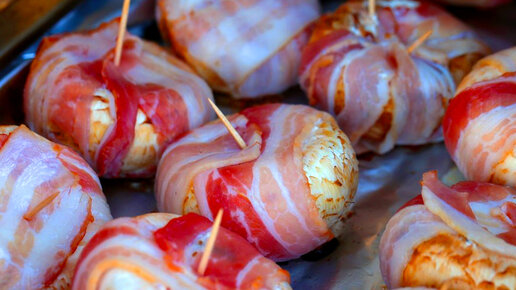 Гости АХНУТ, когда ВОЗЬМУТ в РОТ! Простая ЗАКУСКА на ПРАЗДНИК - вкусные ГРИБЫ в БЕКОНЕ на мангале!