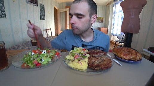 МУКБАНГ НАРЕЗКИ ЛУЧШЕЕ - ПЮРЕ С КОТЛЕТАМИ / САЛАТ ГРЕЧЕСКИЙ / САМСА Mukbang / АСМР 17. 10. 2023 #920