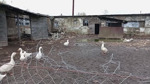 Сбежали индюки, кормим индюков, гусей и все хозяйство.