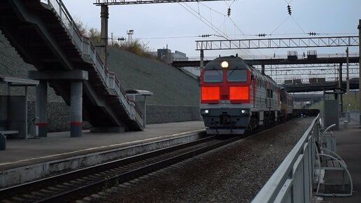 Тепловоз 2ТЭ116У-0060 с составом из рельсовых плетей.