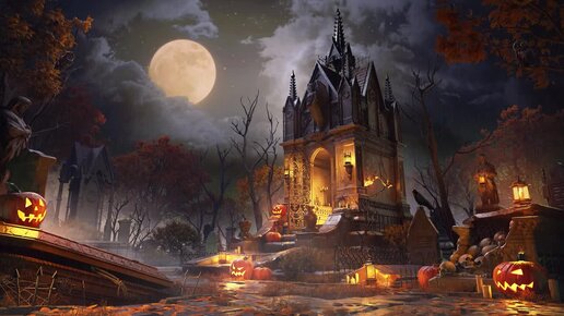 Атмосфера Хэллоуина 🎃 — дождь, жуткие звуки и призрачный ропот ночью .