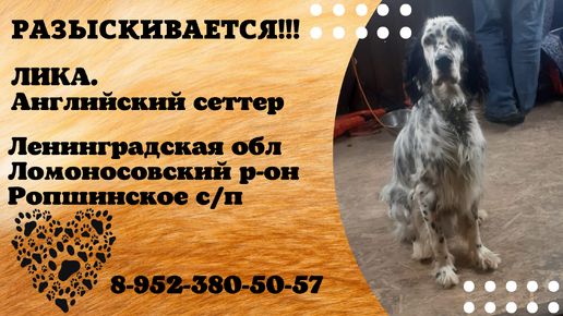 Пропала собака ! ЛИКА , Английский сеттер , Ленинградская область , Ломоносовский р-он