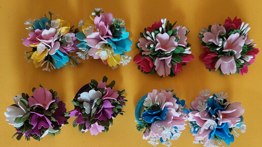 Букетики из фоамирана на заколках и резиночках.