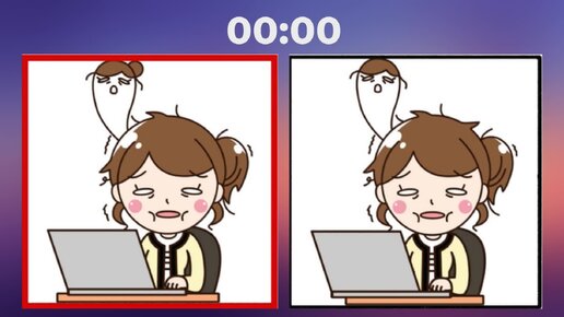 Девушка грустит за ноутбуком. Найди три отличия на картинке.