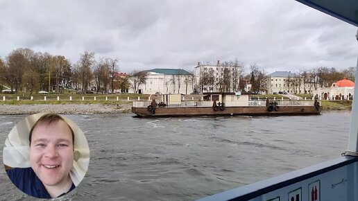 Вид на набережную города Кострома с борта идущего теплохода осенним днём 18.10.2023