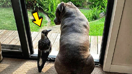 Сорока, выпавшая из гнезда, выросла с собакой и иногда гавкает, думая, что она тоже собака.