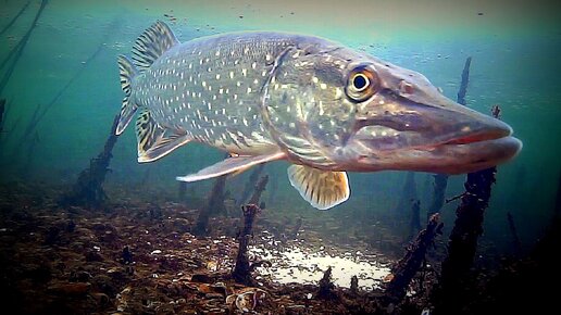 Такое редко увидишь! Щука атакует живца! Подводная съемка
