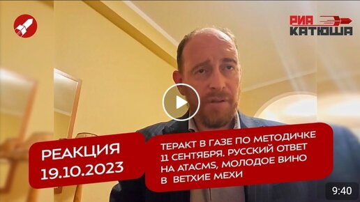 Реакция 19.10.23 Теракт в Газе по методичке 11 сентября. Русский ответ на ATACMs, молодое вино в ветхие мехи