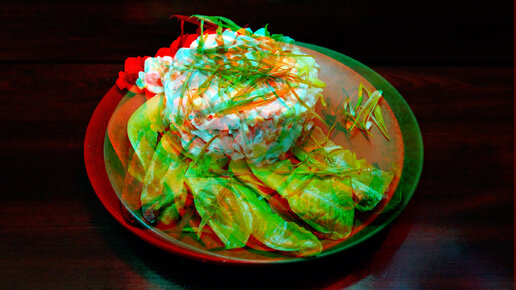 3D sterep red-cyan Салат с молоками и зеленью