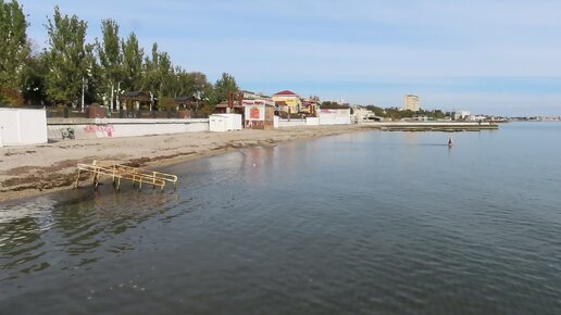 Вид на Феодосийскую набережную с пирса. Октябрь. Крым.