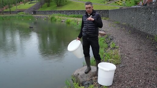 Запуск в пруд декоративных рыб_ Карп Кои, Карась Комета