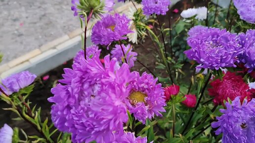 🌺🌿Астры зацвели. Сорт Валентинов -день темно-синяя, красная Пионовидная Седая дама, Королевская белая.🌺🌿