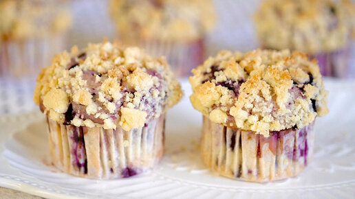 Черничные Маффины с хрустящей посыпкой | Кексы с ягодами и штрейзелем как в кофейне ASMR