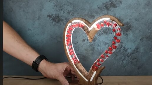 Эпоксилампа в форме сердца с цветком_эпоксирезинарт